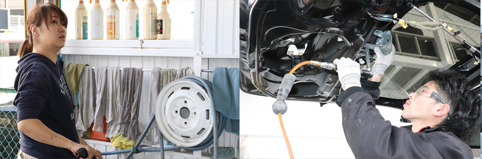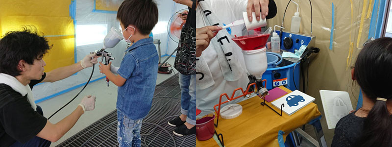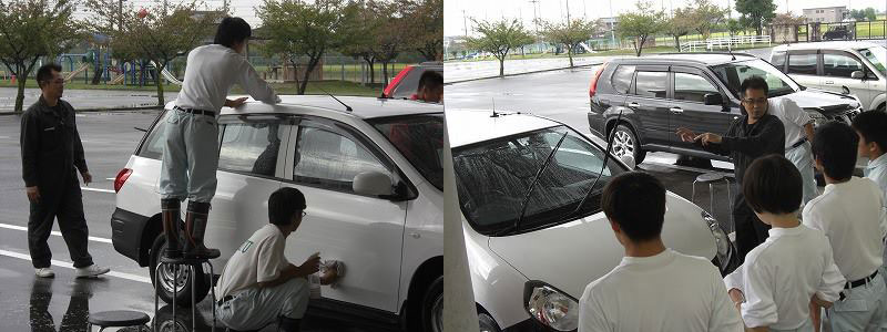 自動車鈑金塗装組合活動を通じ、自動車修理をプロの見解で伝授。学生とのコミュニケーションを設けることで、学生の将来の不安、就職の悩み、仕事への展望など貢献事業を目的としています。 |